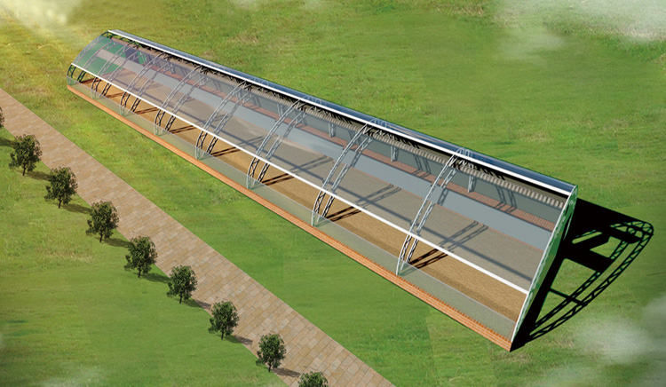 水蓄熱陽光畜牧棚舍配套設備包括:棚舍主體、骨架系統、外覆蓋系統、放風系統、內保溫系統、內膜系統、新型蓄熱裝置等。